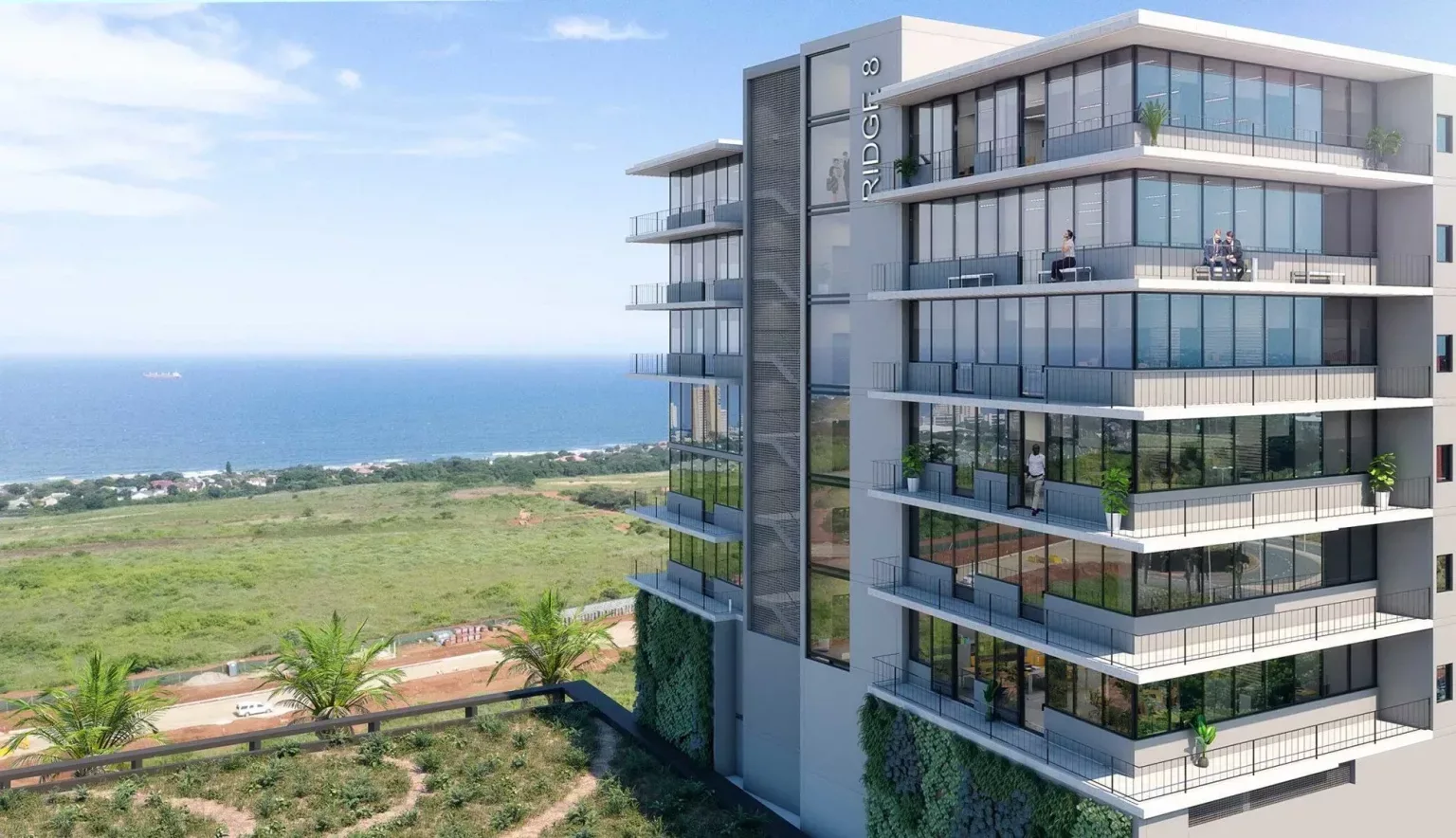 Ridge 7, for example, captures the views provided by the coast and Durban cityscape with its multi-faceted facades and expansive balconies, while Ridge 8 is built to blend the green and urban spaces that surround it at ground level, doing so using perforated screens and long-spanning glazing elements that provide architectural balance.